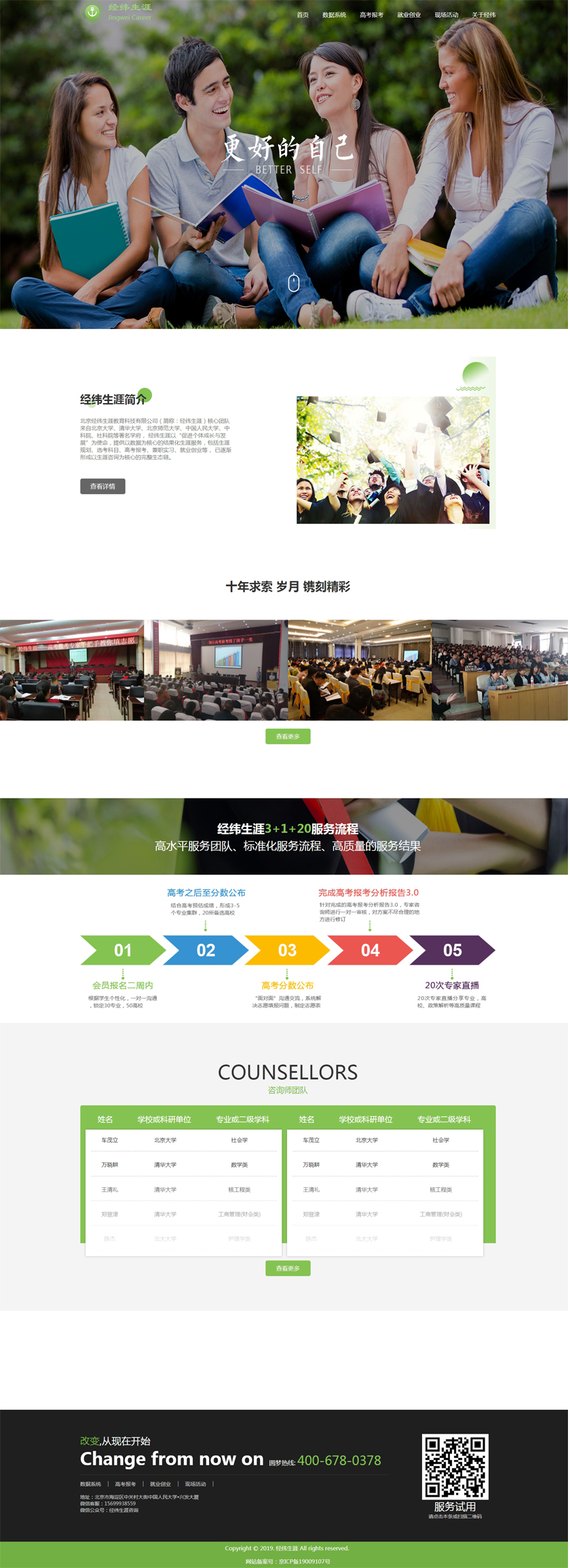 Project Description 北京经纬生涯教育科技有限公司(简称:经纬生涯)核心团队来自北京大学、清华大学、北京师范大学、中国人民大学、中科院、社科院等著名学府, 经纬生涯以“促进个体成长与发展”为使命,提供以数据为核心的结果化生涯服务,包括生涯规划、选考科目、高考报考、兼职实习、就业创业等, 已逐渐形成以生涯咨询为核心的完整生态链。 Official website address 五家渠http://www.jingweishengya.com/ I want to share